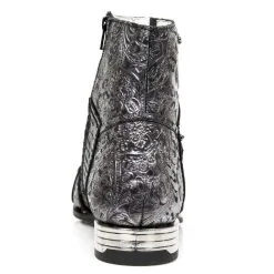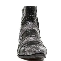 Bottines en cuir noir et gris avec décoration baroque et effet croco, vous aimez le vintage alors cette paire est pour vous!