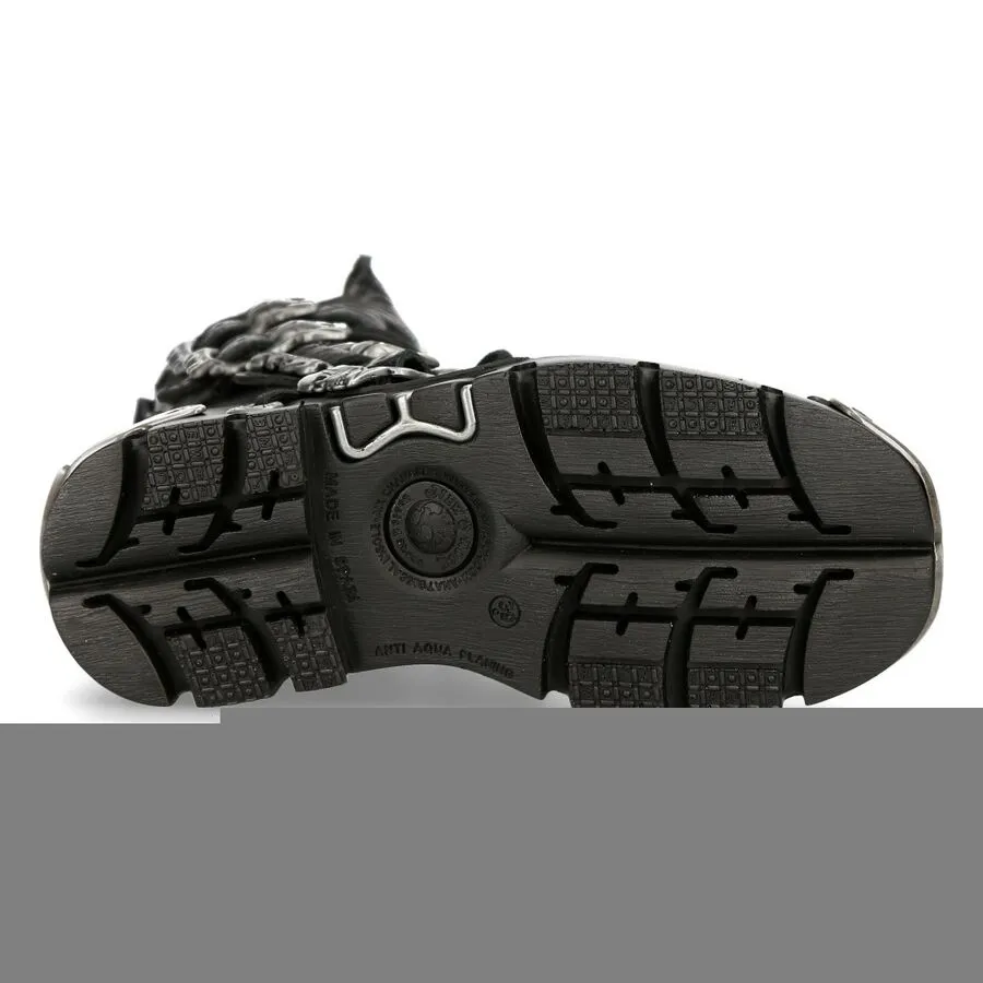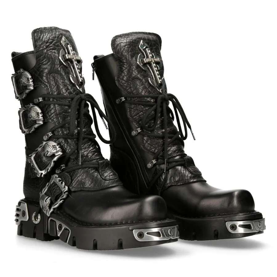 Les boucles en forme de skull apportent une touche trĂšs dark, quant Ă la grande croix gothique en mĂ©tal elle est lĂ pour rapeller Ă ceux qui avaient un doute qu’il s’agit bien de bottes 100% goth