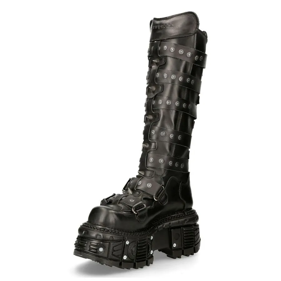 Vous aimez les clous, les rivets, les boucles en métal, les grosses semelles compensées ? Alors les New Rock M.151-C3 devraient vous faire craquer !