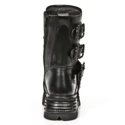 Dans la pure lignée des best-sellers de chez New Rock, ces bottes en cuir noir sont décorées de boucles en forme de skull pour un look dévastateur