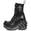 Ces grandes bottes en cuir noir possÚdent des semelles compensées en métal décorées de petits clous, 6 sangles de réglages et un laçage frontal, fermeture éclair intérieure