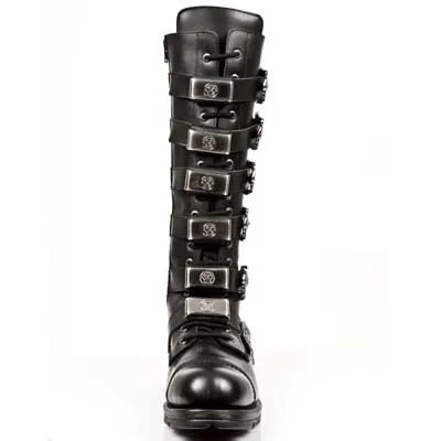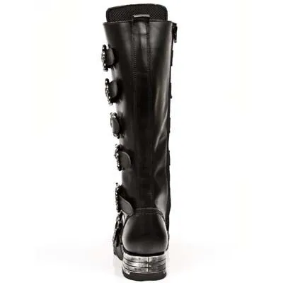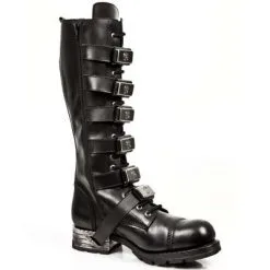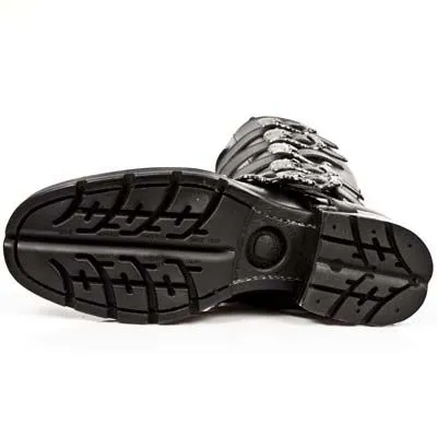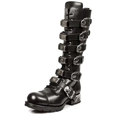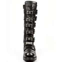 Grandes bottes avec plaques et boucles métalliques skull, laçage frontal, fermeture éclair intérieure pour plus de facilité