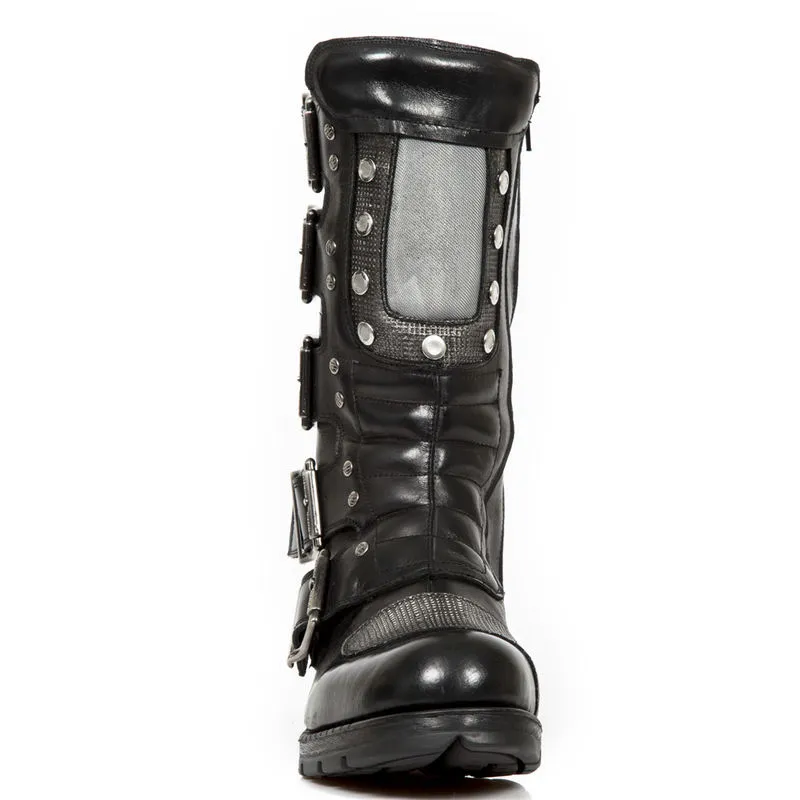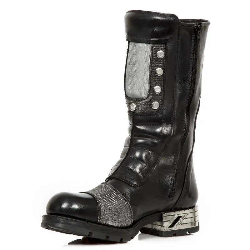 Ces bottes style biker en cuir de haute qualité sont agrémentées de piÚces de cuir effet cÎte de maille, les nombreux rivets métalliques ajoutent au style hors du commun de ce modÚle