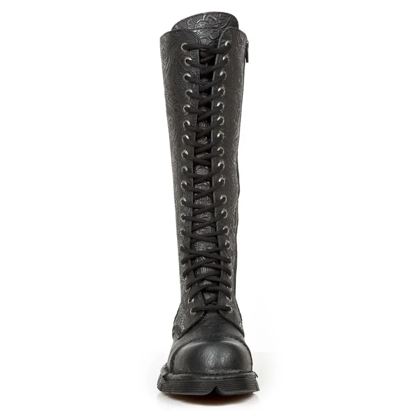 Ces rangers 19 trous sortent de l’ordinaire grĂące Ă ce cuir “embossed” aux motifs baroques