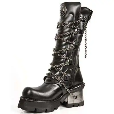 Ces bottes ne passeront pas inaperçu grùce aux chaßnes qui remplace les lacets, nombreuses boucles de serrage, talon métallique, semellle compensées