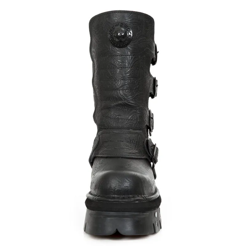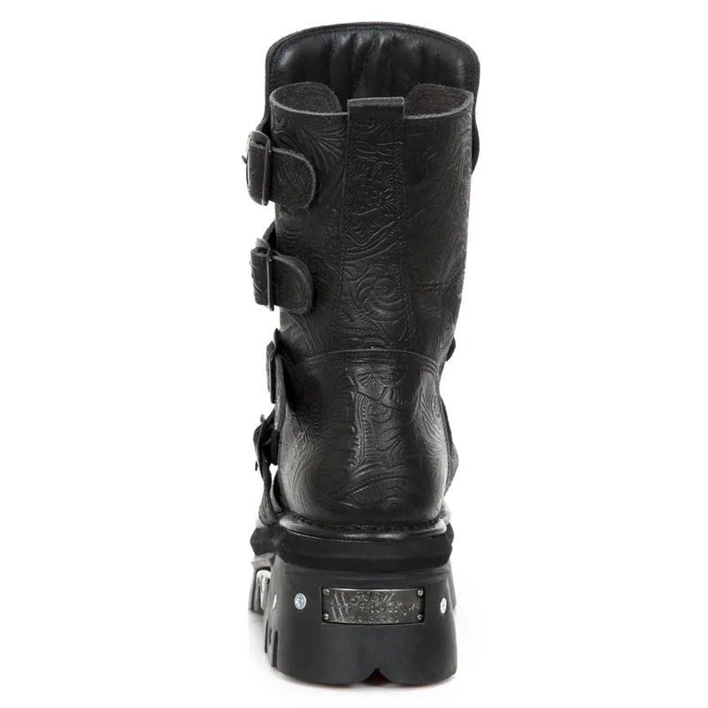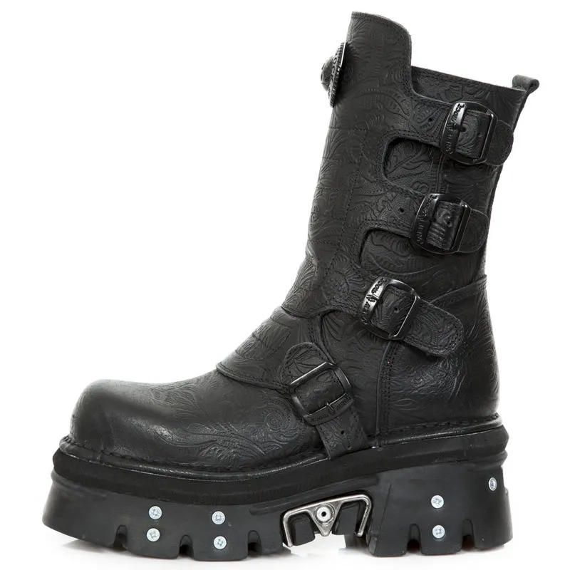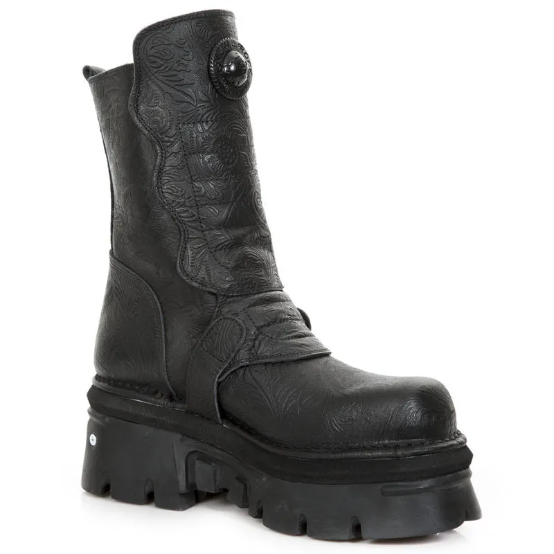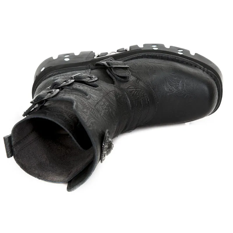 Bottines gothique en cuir noir mixtes avec dĂ©coration baroque sur toute la botteÂ