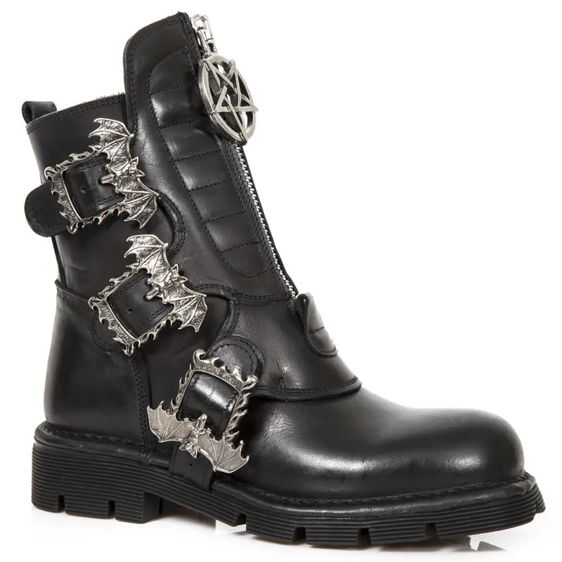 Pur style gothique pour ces bottines new rock agrémentées de superbes boucles métalliques en forme de chauve-souris