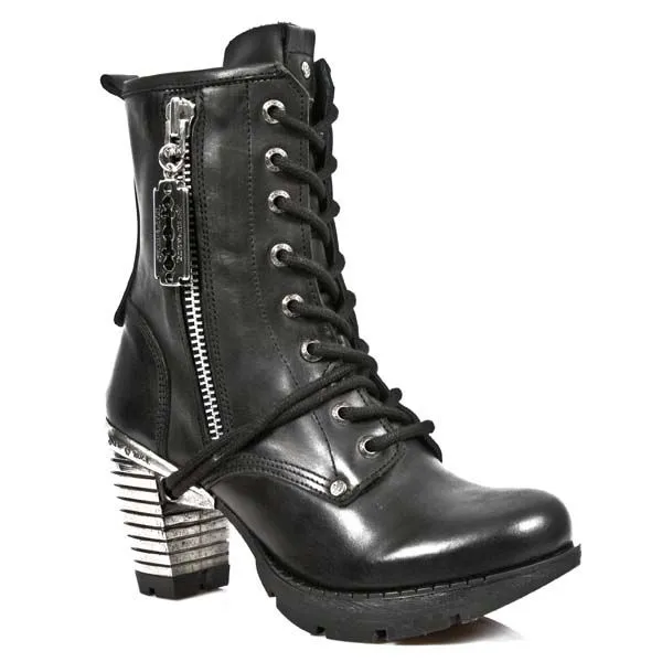 D’une simplicitĂ© rare chez New Rock, ces bottines possĂšdent tout de mĂȘme un style unique et inimitable qui plaĂźt tant aux adeptes de la marque !