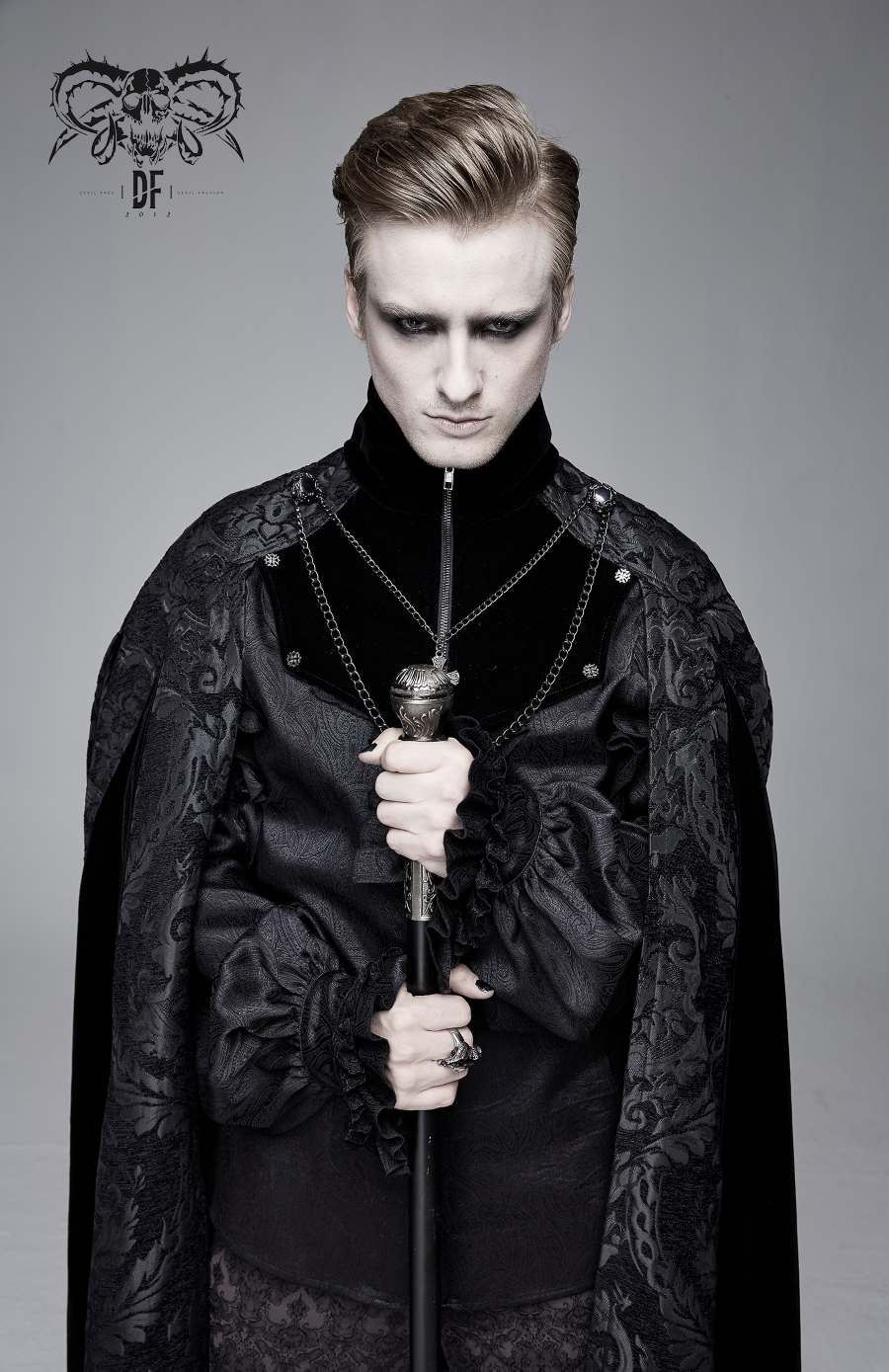 Bijoux amovibles montés sur une double chaßne avec une croix gothique et un cercle antique, vous pouvez les passer par les 2 gros boutons de décoration sur les épaules pour un super look comme sur nos photos