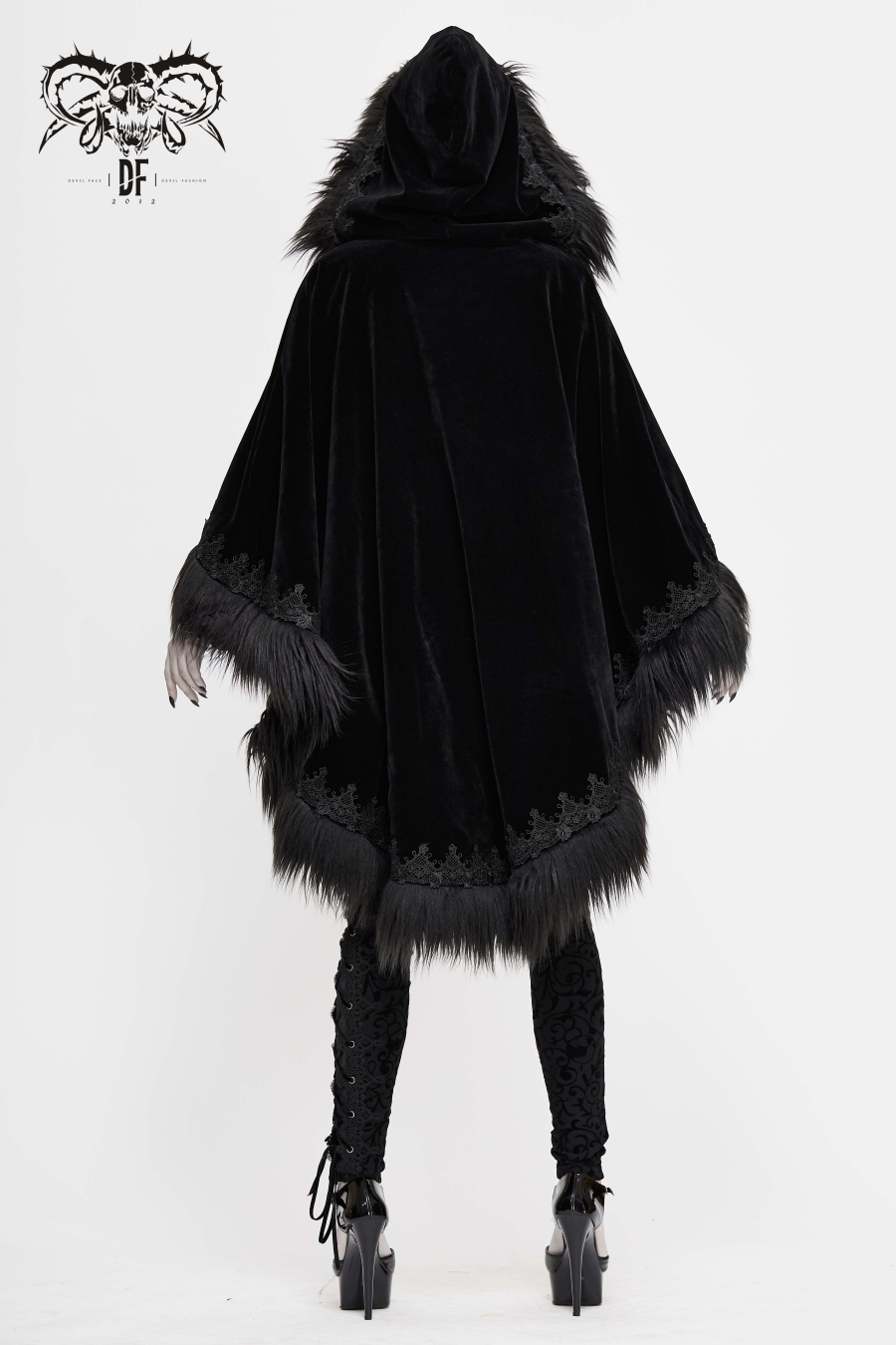 Superbe cape de mi-longueur en velours noir par Devil Fashion