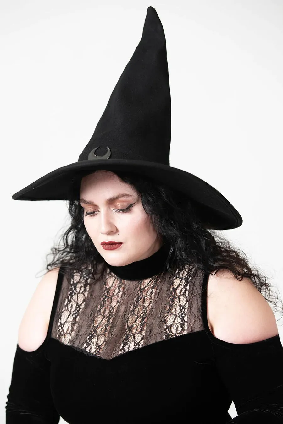Crosisant de lune en métal pour accentuer le côté ésotérique de ce chapeau