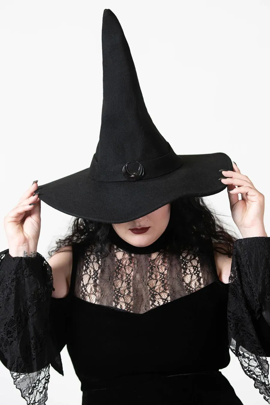 Ce grand chapeau de sorcière est fabriqué en laine synthétique de haute qualité