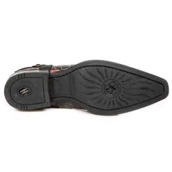Belles et originales ces chassures new rock ne passeront pas inaperçu, le cuir multicolor gravé de motfs baroques est somptueux et contraste à merveille avec les parties de cuir noir