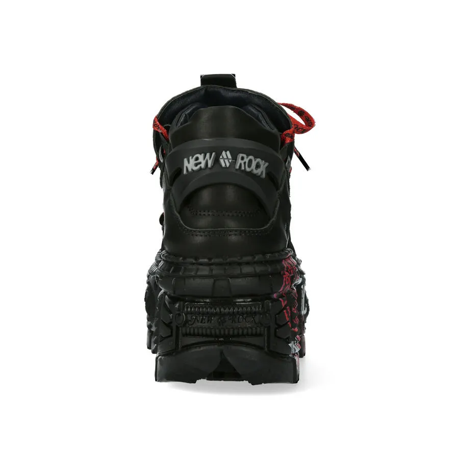 Sur base de la fameuse New Rock 106, modĂšle le plus vendu de la marque, cette toute nouvelle version en impose avec ses semelles “tank” , ses lacets rouges et ses graffditis suyr les semelles