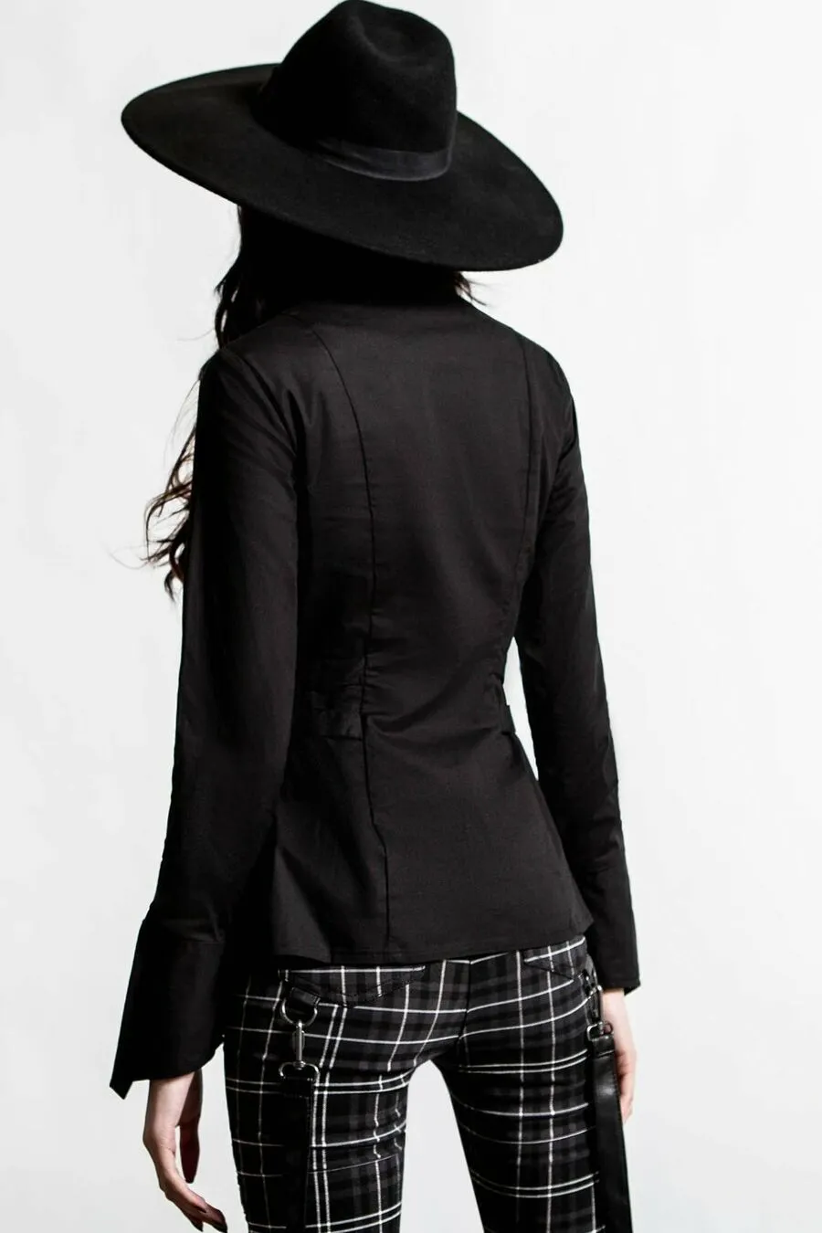 Superbe chemise noire taillée dans un tissu souple et élastique de grande qualité par Killstar