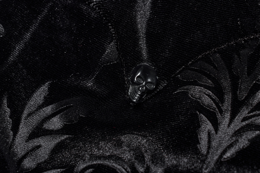 Petits skulls métalliques noirs sur le haut des manches