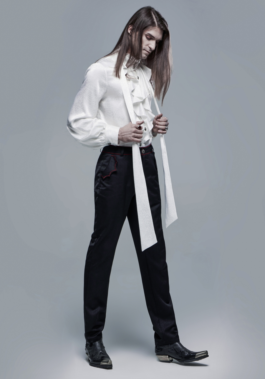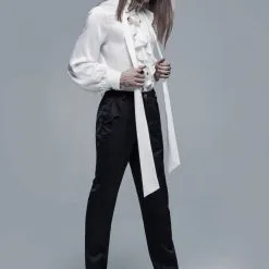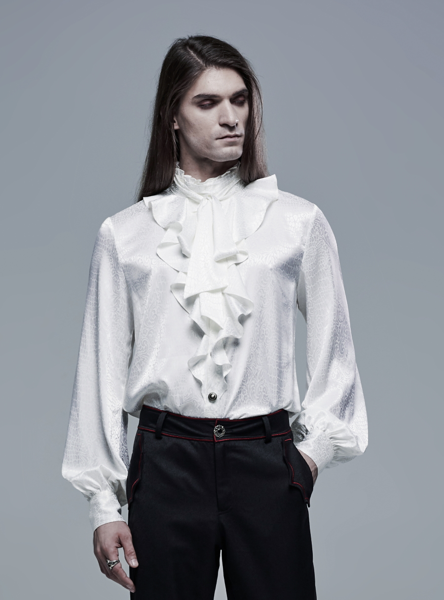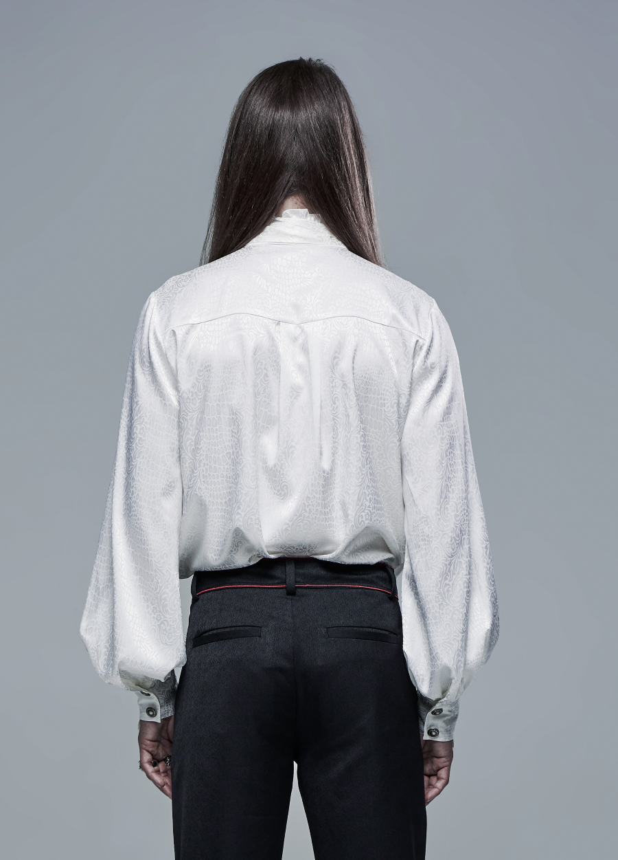 Chemise vampire blanche en tissu jacquard satiné de trÚs belle qualité avec motifs effet serpent & cachemire