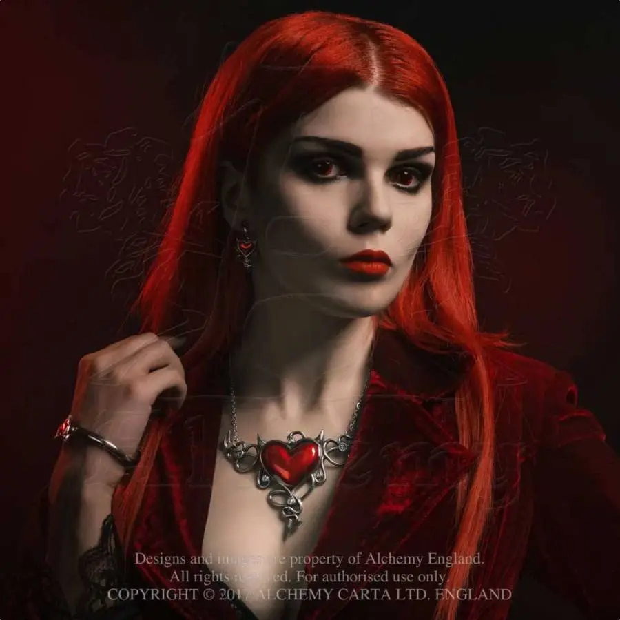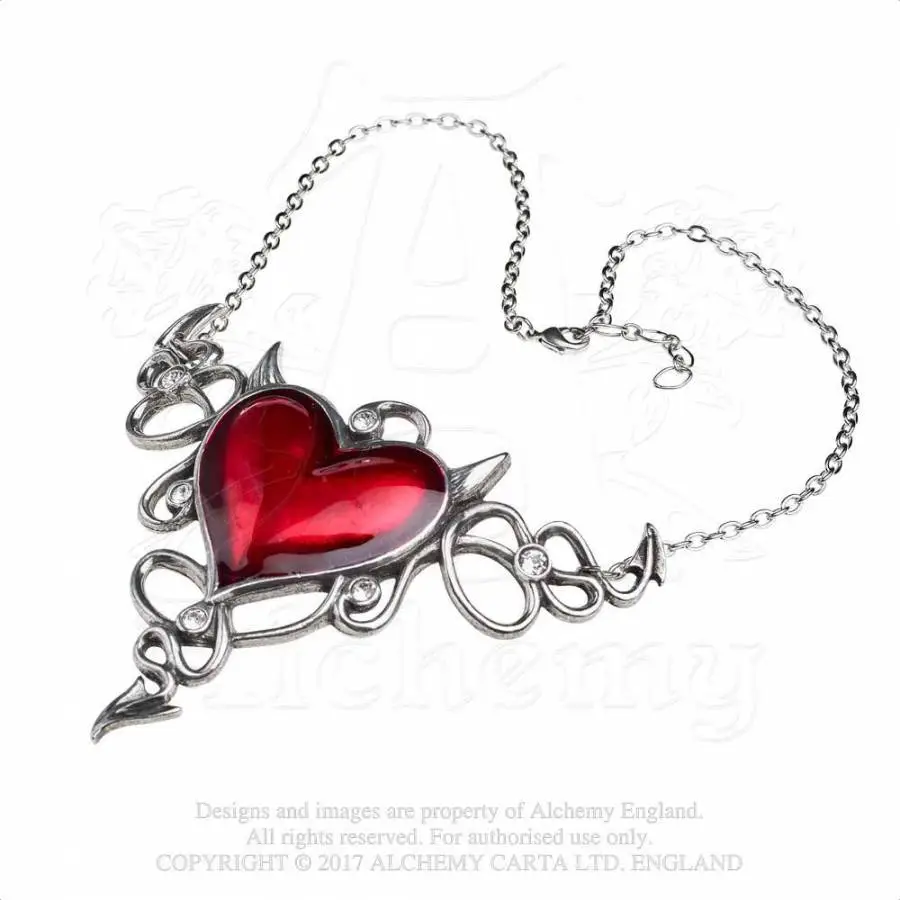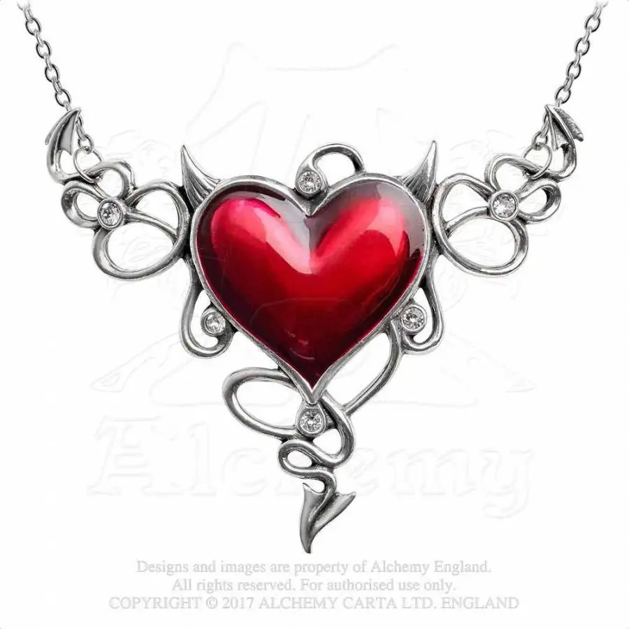 Les amatrices de look hors normes et provocateur mais avec une belle touche fĂ©minine seront comblĂ©es par le collier “devil heart” de chez Alchemy gothic