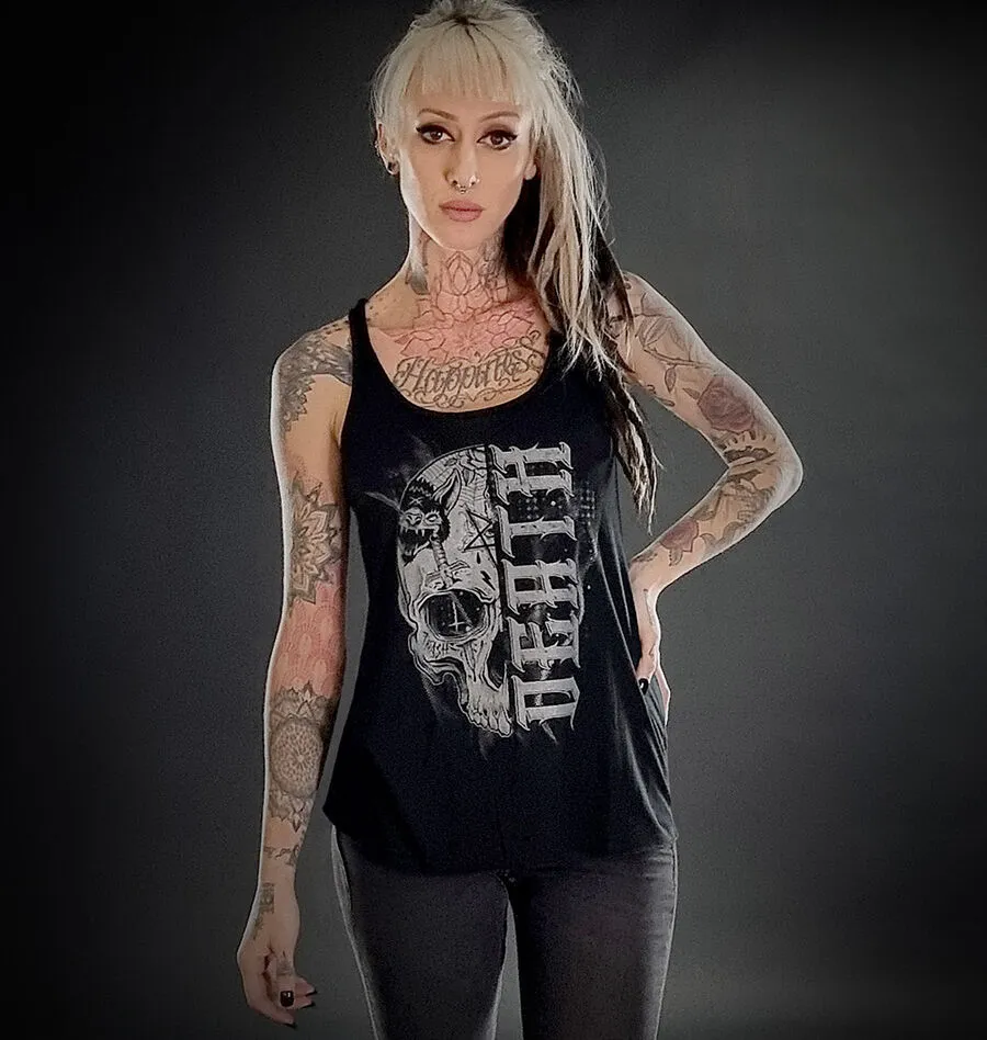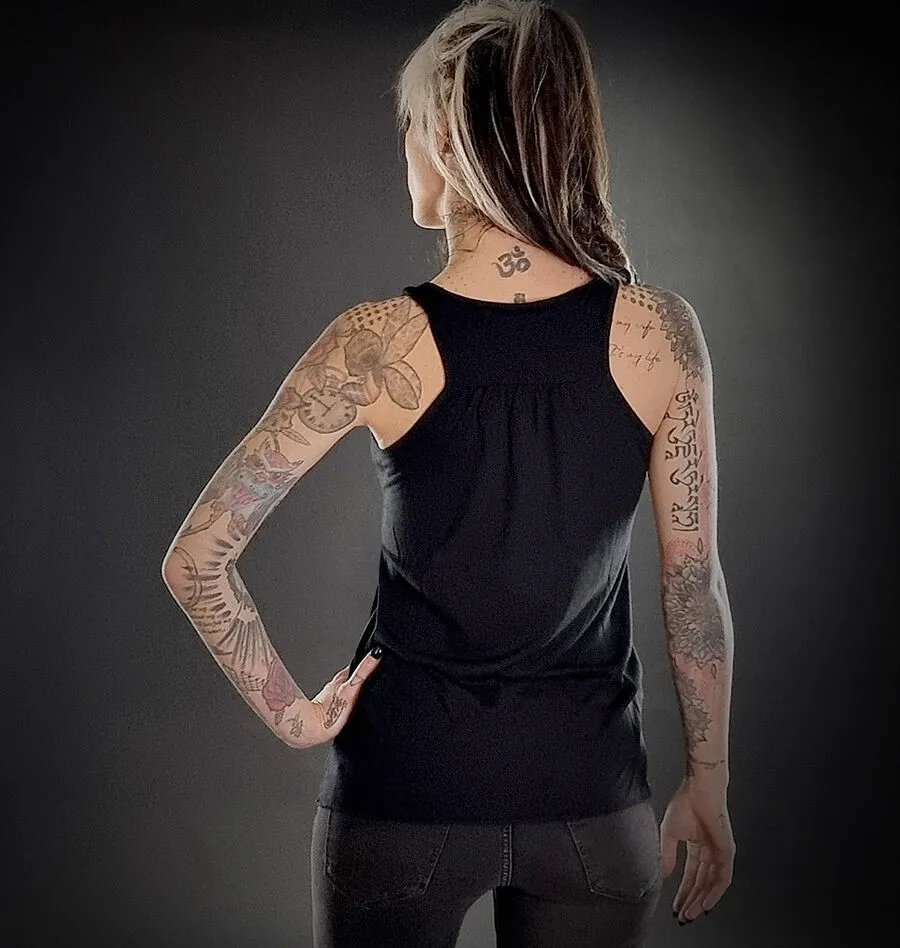 Très beau débardeur femme de style rock gothjique tattoo par Hyraw