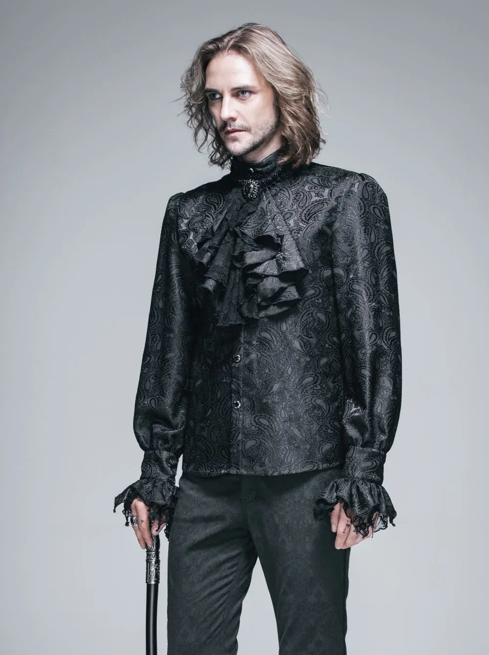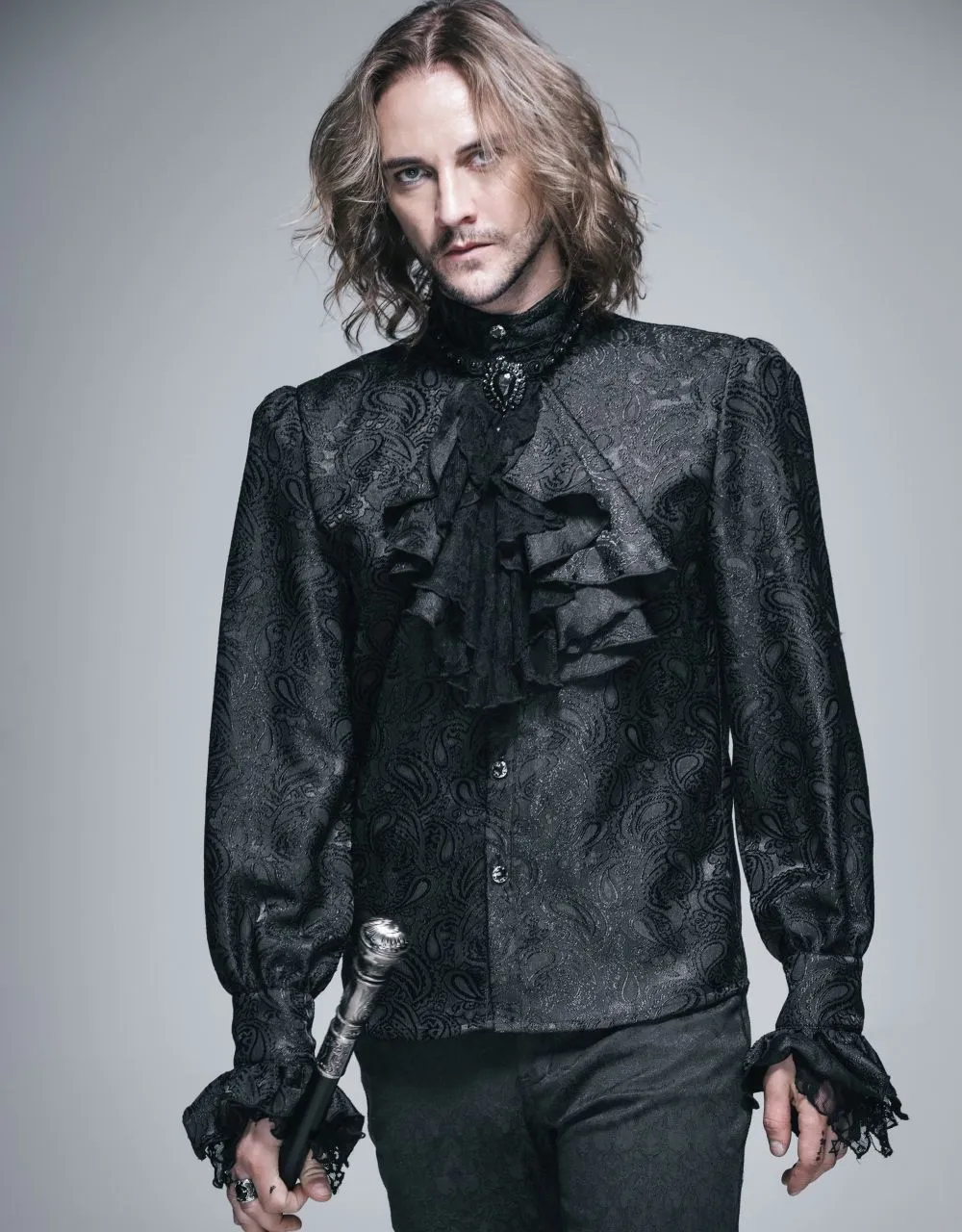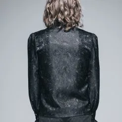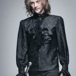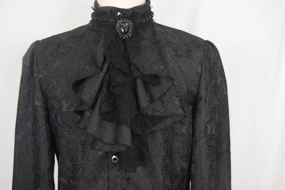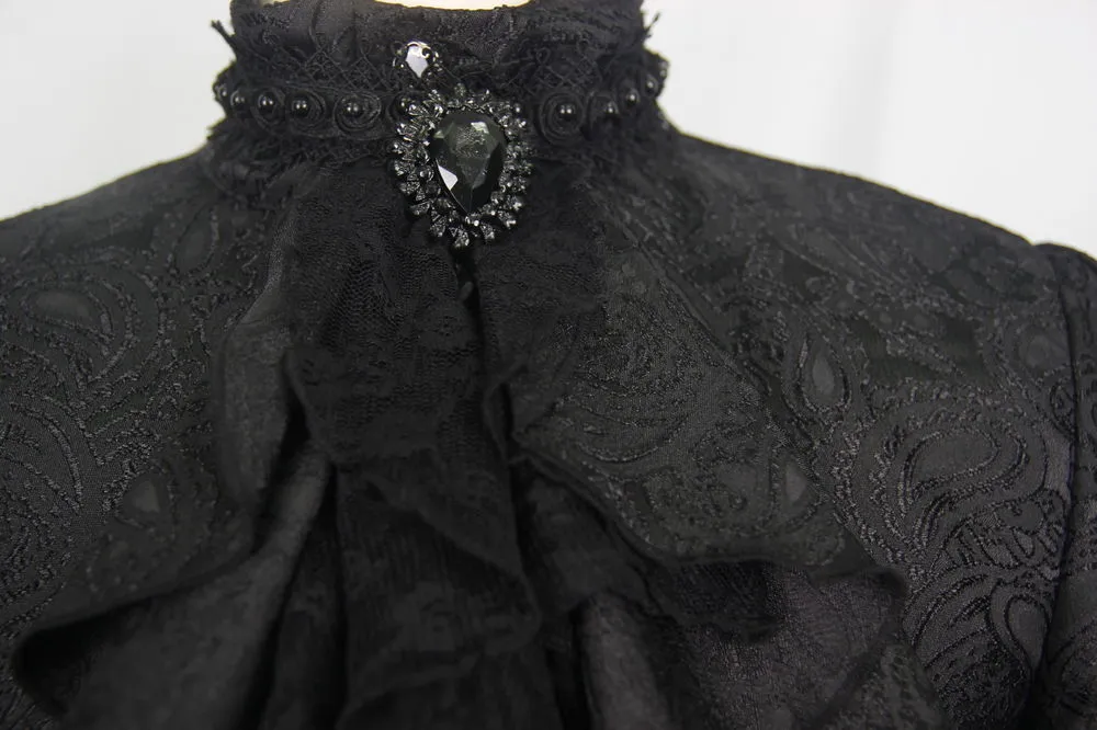 Superbe chemise gothique Ă jabot en tissu brocarde noir