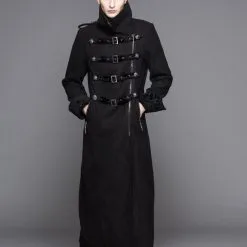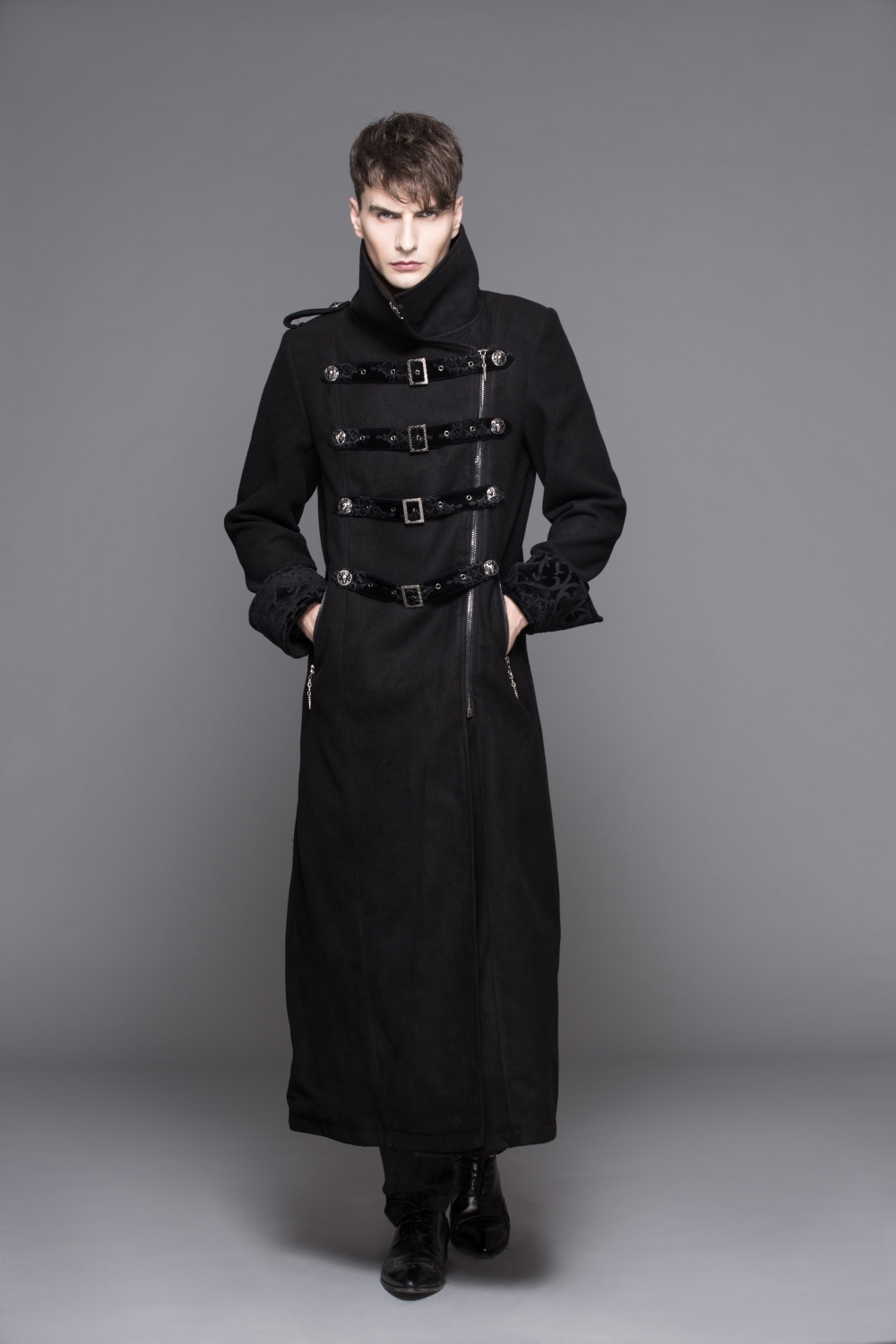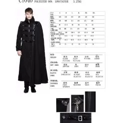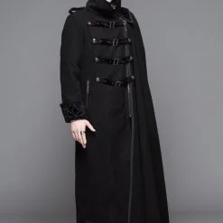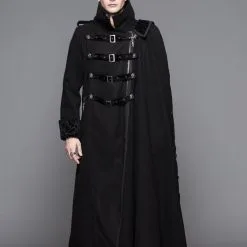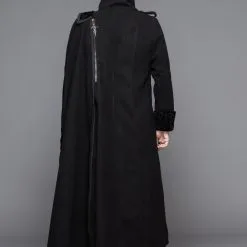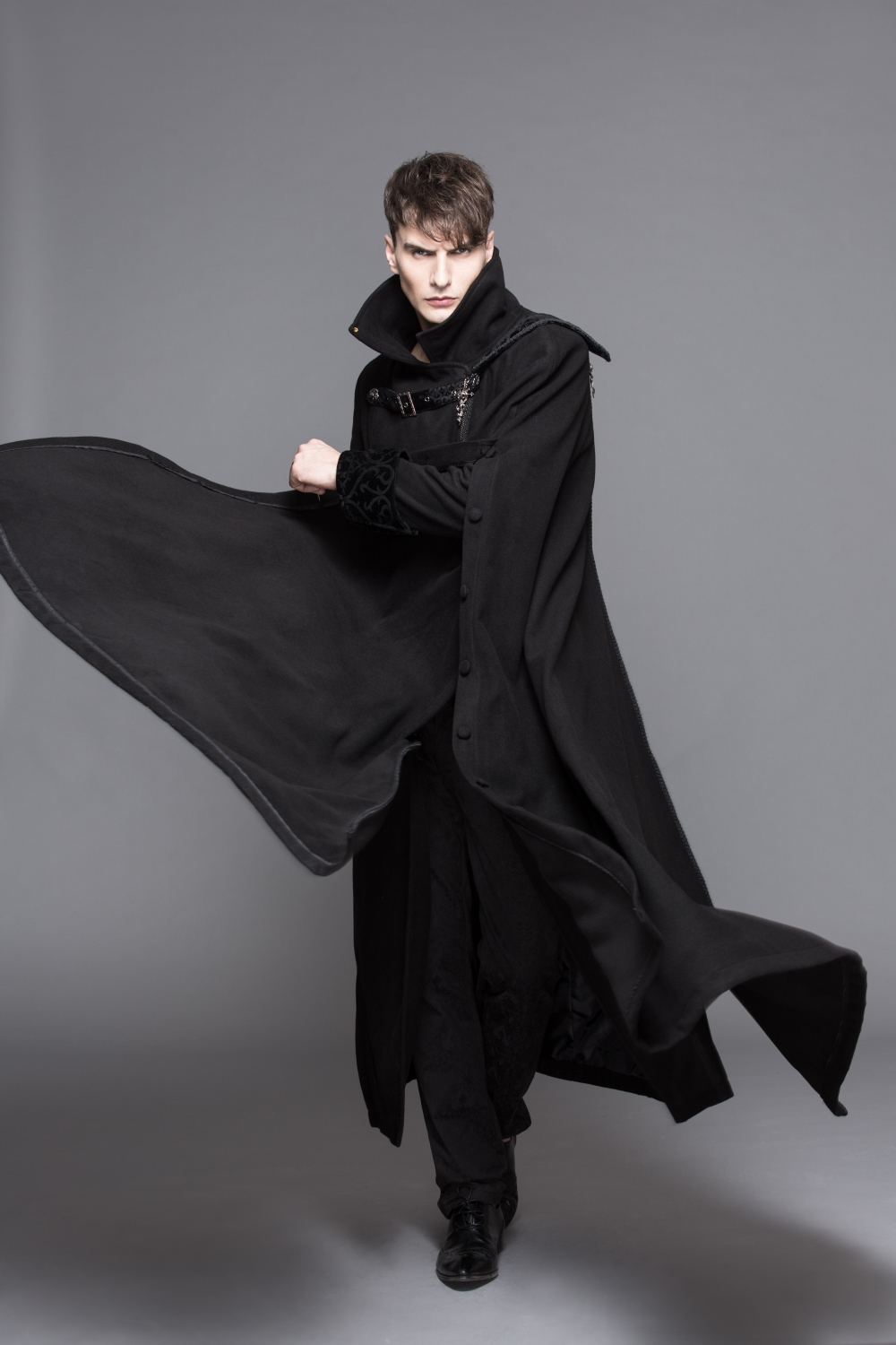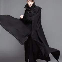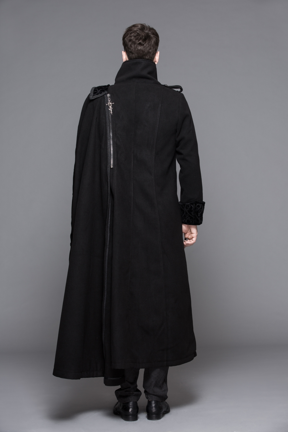 TrÚs beau manteau gothique en laine synthétique noire de qualité, la grande particularité de ce modÚle vient de sa cape asymétrique et amovible sur le cÎté gauche