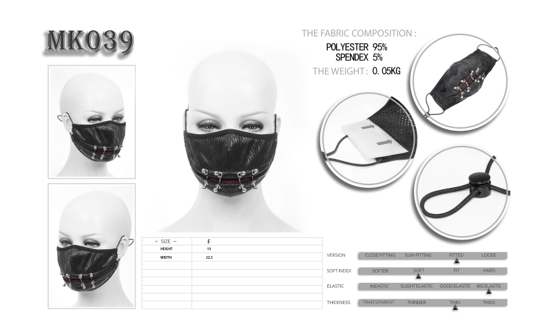 Sensationnel masque de visage en tissu noir avec bijoux de percing, un look incroyable, bien plus qu’un masque de protection, un véritable accessoire de mode!