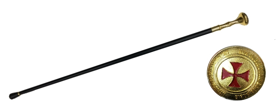 Pommeau en métal doré décoré de la fameuse croix rouge des chevaliers Templiers