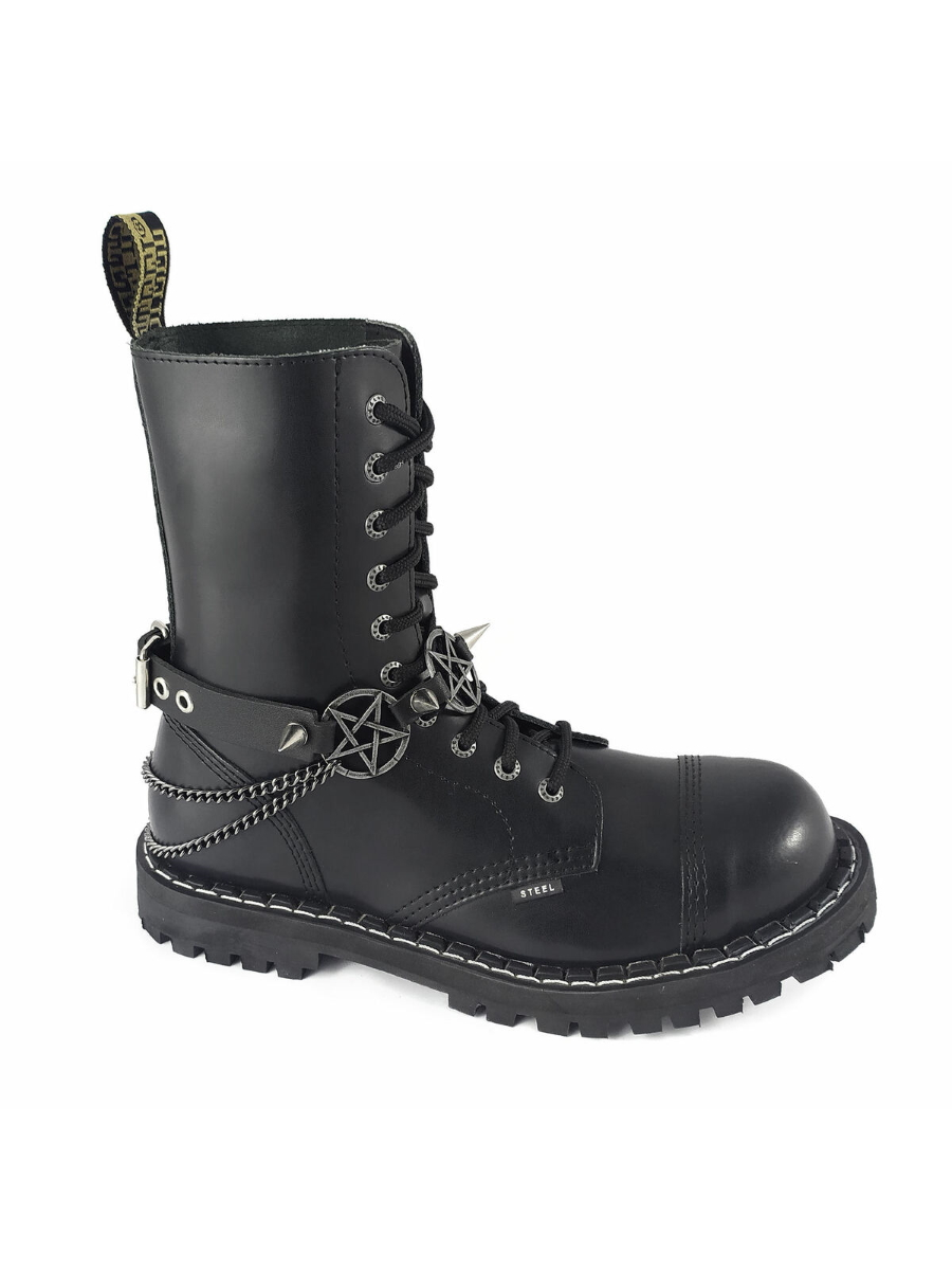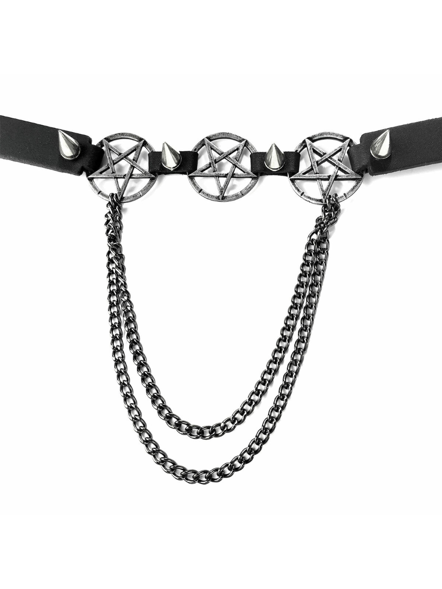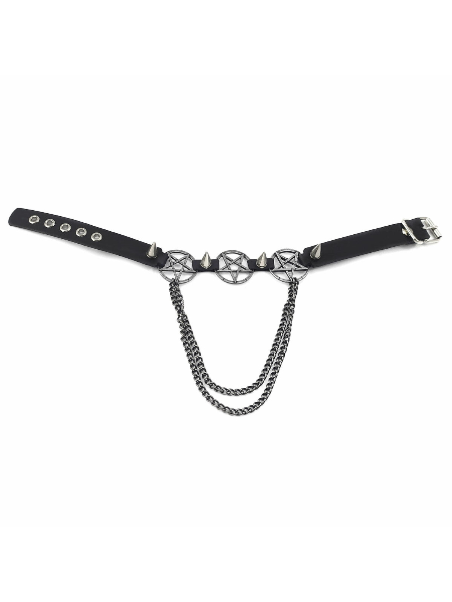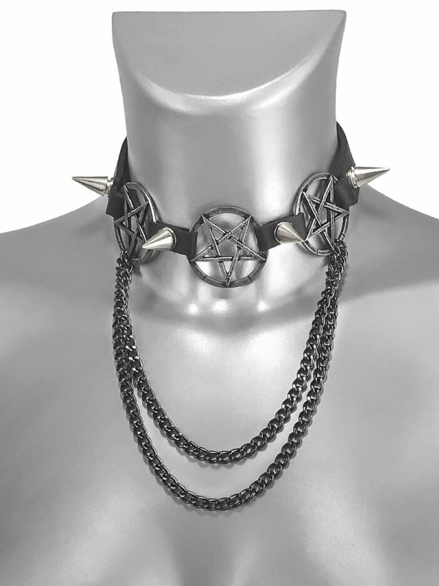 Il est orné de 3 pentagrammes en métal vieilli, de 4 clous pointus de 2 cm et de 2 chaßnes pendantes