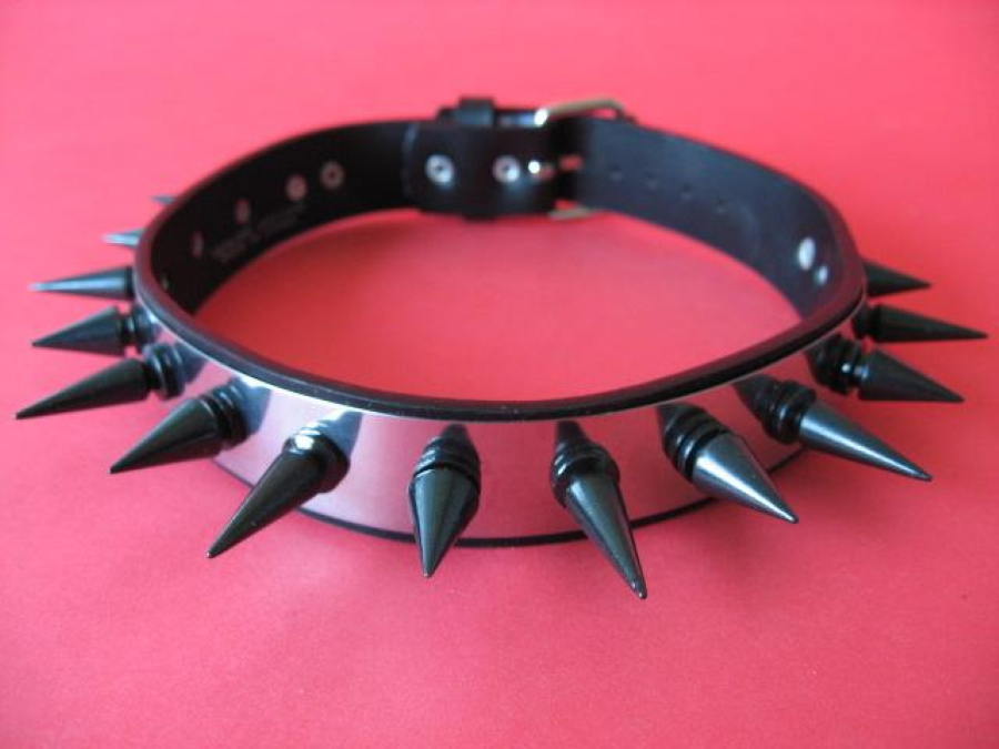 Le collier clouté est un incontournable du mileu alternatif en général, que ce soit got, punk, cyber…