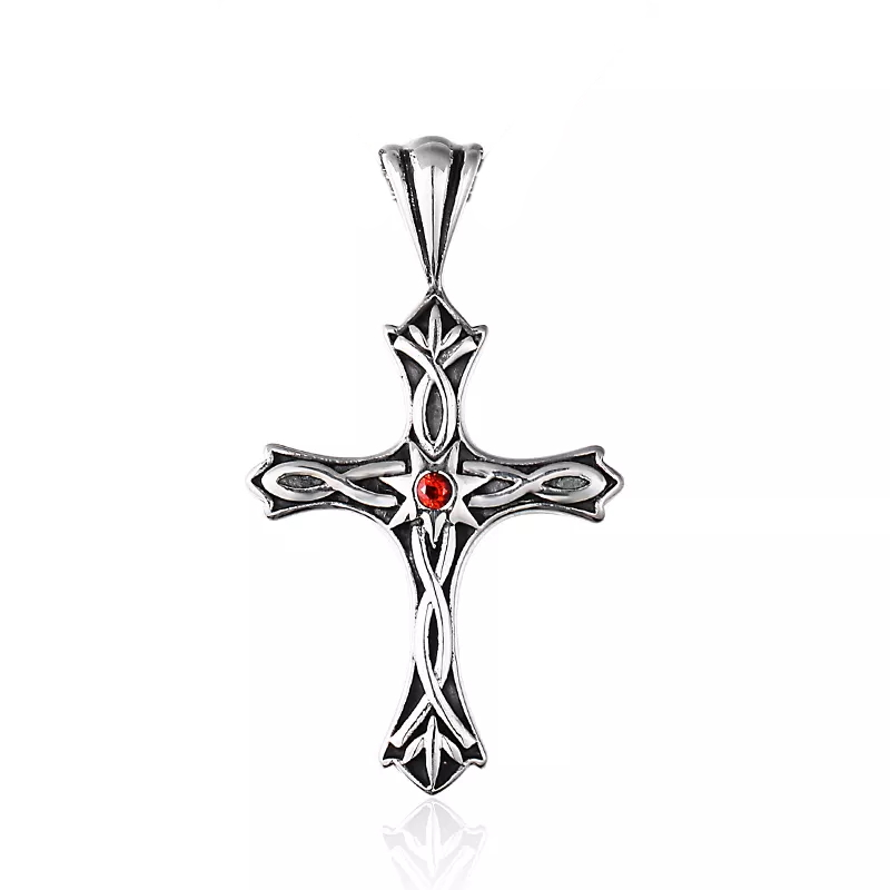 Petite croix gothique en acier inoxydable ornée de motifs entrelacés