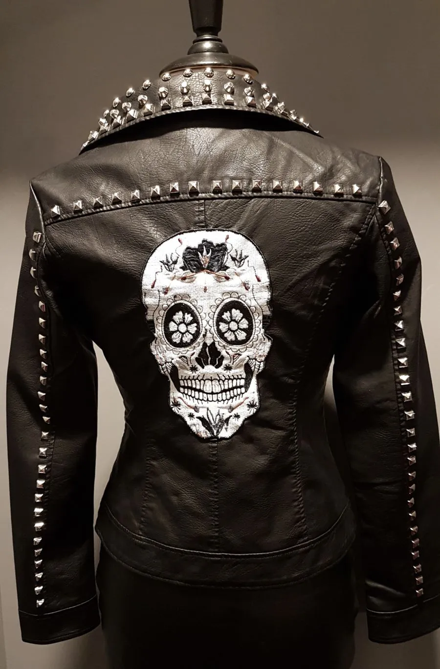 Grand patch brodé dans le dos en forme de skull Mexicain
