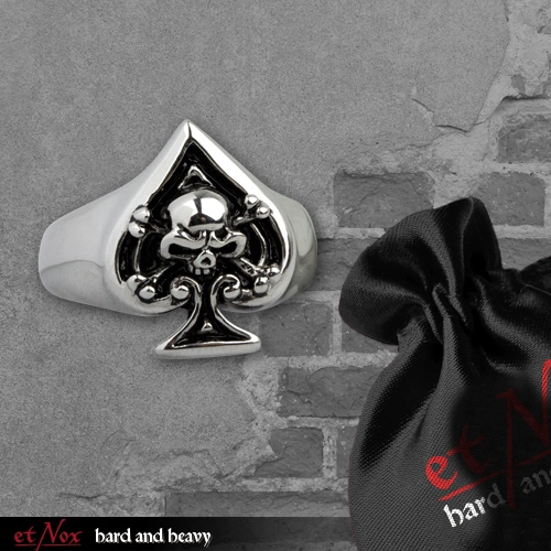 Bague gothique en forme d’as de pique surmontĂ© d’un skull terrifiant  !