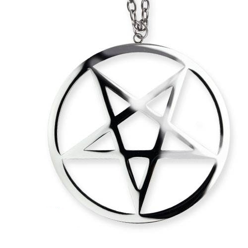Énorme pentagramme inversé livré avec sa chaîne et sa pochette en satin, pour le coup vous ne passerez certainement pas inaperçu car avec son diamètre de 7 cm il se remarque de loin