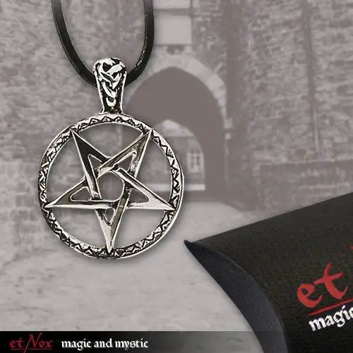 Pentagramme inversé en argent de 3 cm de diamètre, livré dans une boîte avec son cordon de cuir