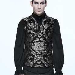 Ce gilet noir de style royaliste est décoré de supers motifs baroques gris, il possÚde de beaux boutons argentés