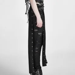 Paire de guêtres gothiques en tissu transparent et cuir noir ornée de grands laçages par cordon , 2 sangles de réglage, fermeture éclair de 23 cm sur le bas