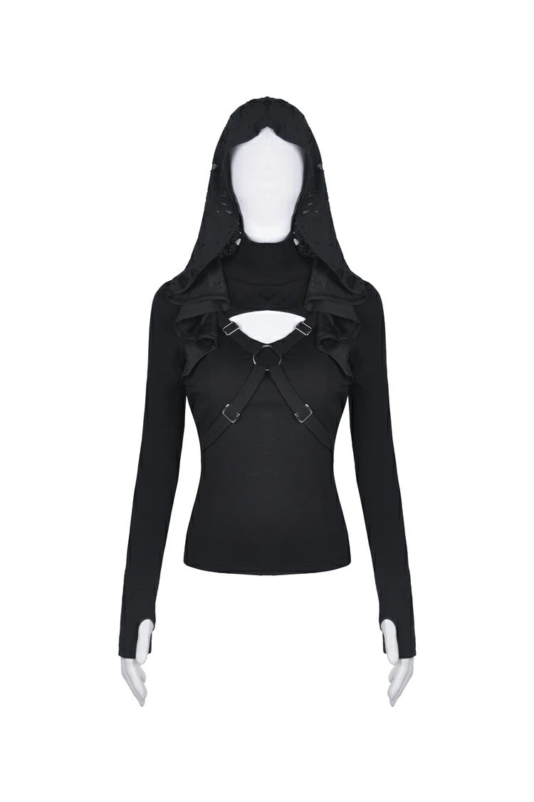Ce haut manches longues signĂ© Dark In Love possĂšde une impressionnante capuche surdimensionnĂ©e retombant sur les Ă©paulesÂ