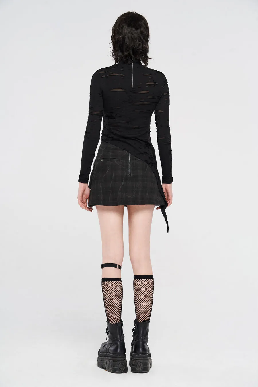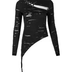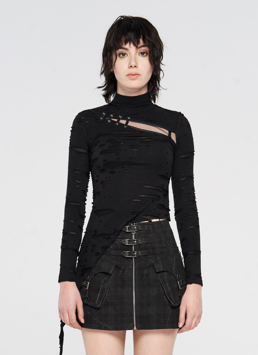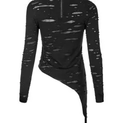 Ce haut manches longues Punk Rave est taillé dans un tissu souple et léger aux effets déchirés