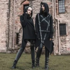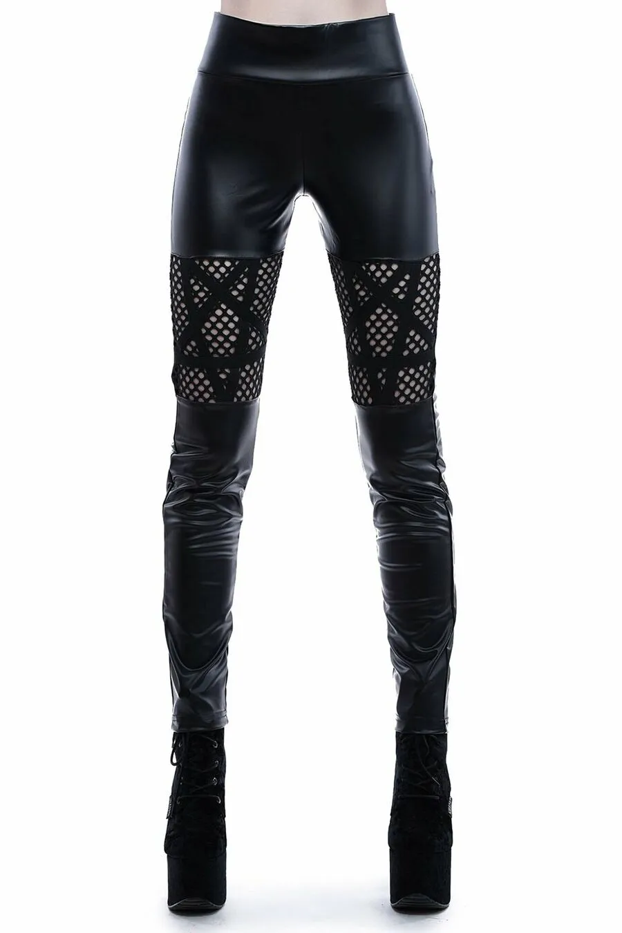 Le  leggings Killstar “Witchnet” de coupe classique reste simple avec un tissu en similicuir ultra-extensible et des empiĂšcements en rĂ©sille grosses mailles et des grands pentagrammes