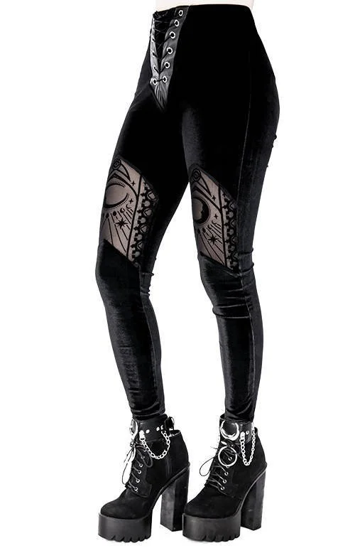Il possÚde un empiÚcement en tissu résille trÚs fin au dessus des genoux avec le motif de la diseuse de bonne aventure apportant une touche Occulte