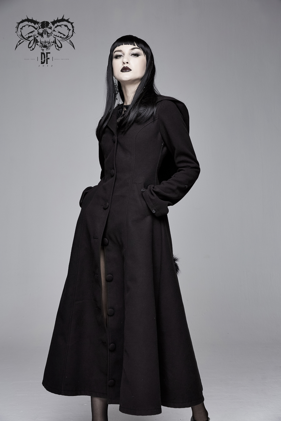 Long manteau gothique en laine synthétique ultra douce et de grande qualité signé Devil Fashion