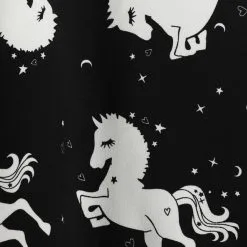 Cette belle robe noire signée Hell Bunny possÚde un imprimé de licornes dans un pur esprit Fantasy