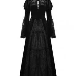 Longue robe gothique victorienne impératrice, noire à manches longues, signée Dark In Love