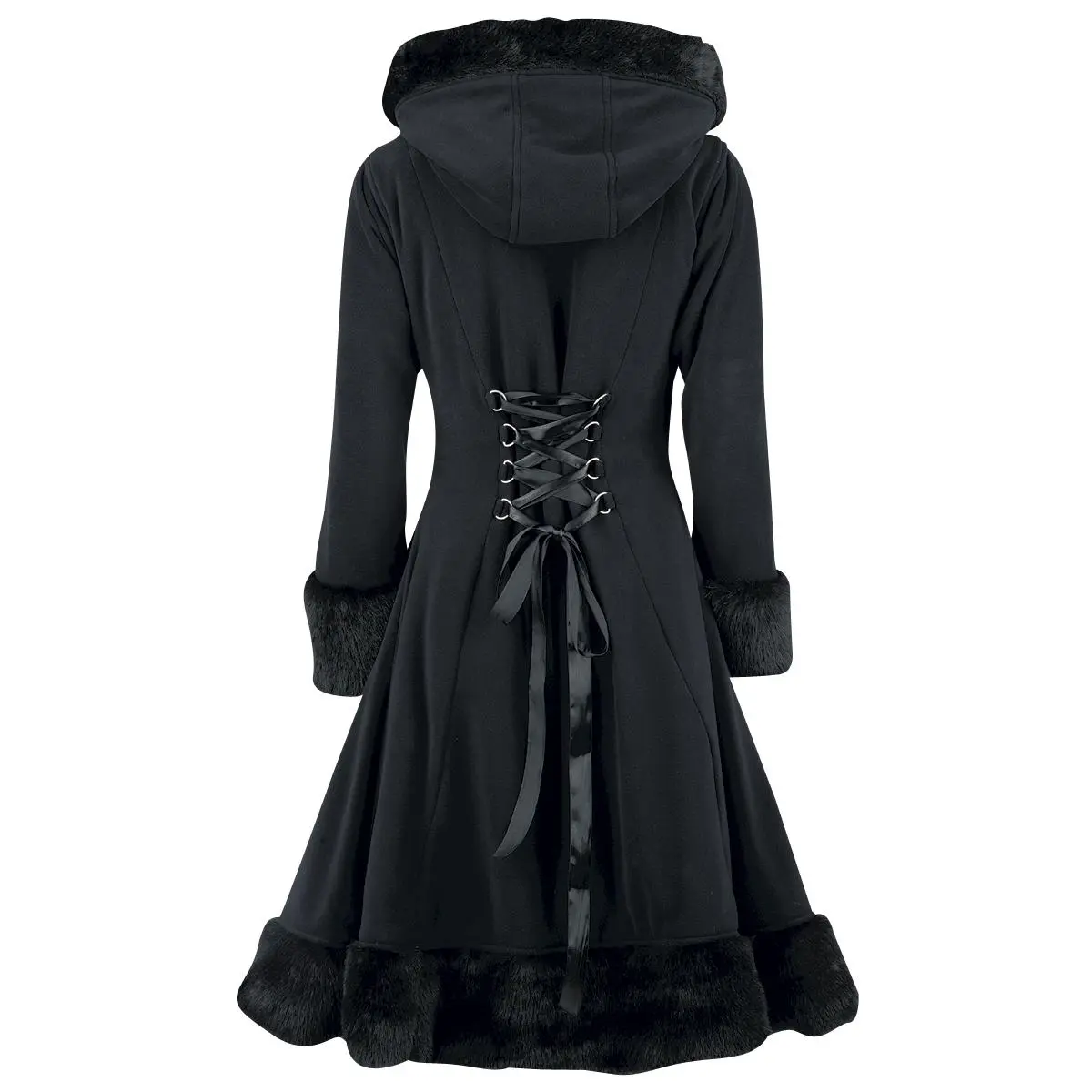 La fourrure synthétique coure également le long du manteau, sur le revers des manches et le bas du manteau