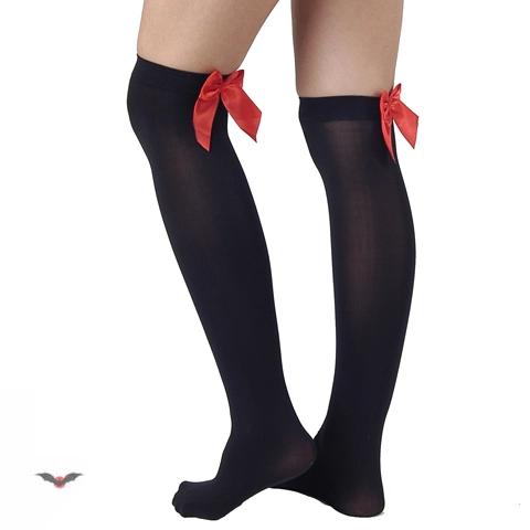 Mi-bas gothique Queen of darkness agrĂ©mentĂ©s d’un gros noeud de satin rouge, taille unique