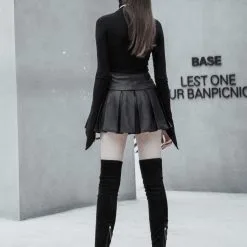 Belle jupe plissée en simili cuir noir de grande qualité signée Punk Rave
