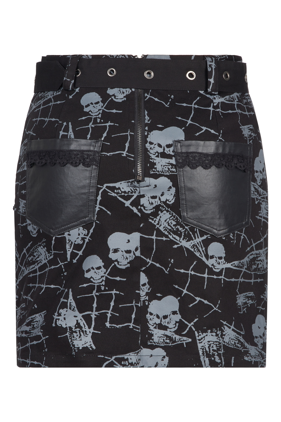 Mini jupe imprimée de skulls gris signée Punk Rave