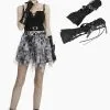 Ces longues mitaines en velours noir corbeau signées Sinister sont ornées fine dentelle