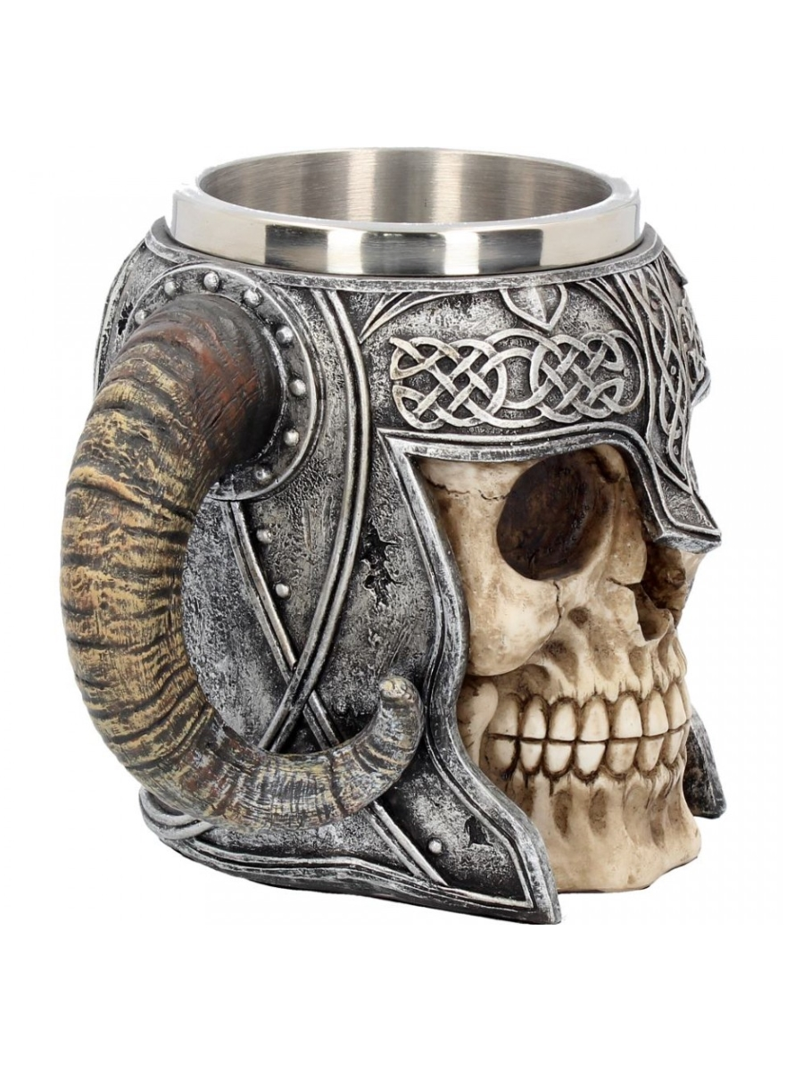 Cette chope crĂąne couverte d’un casque de guerrier viking ne mesure pas moins de 20 cm de large