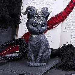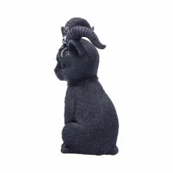 Une créature étonnante, un chat assis avec des cornes de chÚvre, il est orné de pentagramme, skull et sigles Occultes